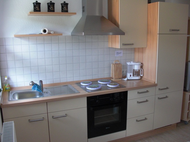 Eine komplett eingerichtete Wohnküche, Sat-TV und Radio ist vorhanden.